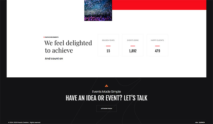 At Quench, we believe in transforming ideas into extraordinary digital experiences, and our latest creation for Phoenix Creators is no exception! ππ» This high-performance corporate website is designed to make event management effortless, featuring intuitive booking systems, dynamic galleries, and an engaging user experience.